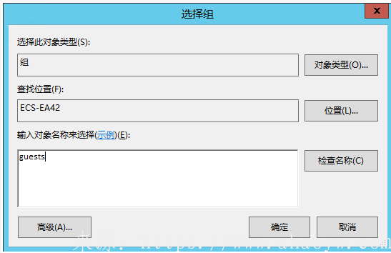 在弹出窗口中选择隶属于将 “users” 删除,并添加 “guests” 点击确定,完成账户的创建。